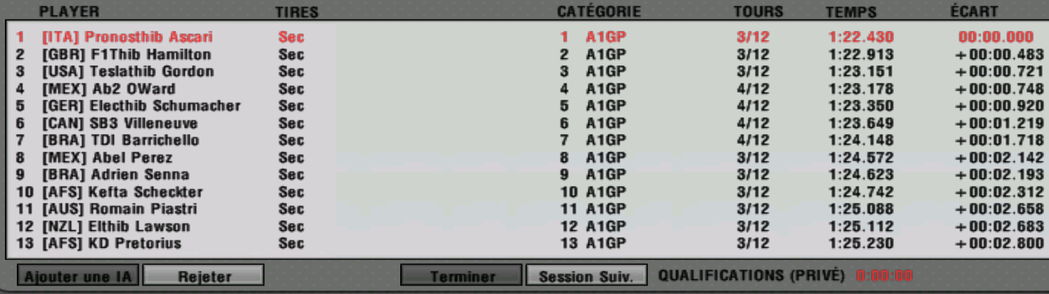 Qualifs (privées) : 5 minutes